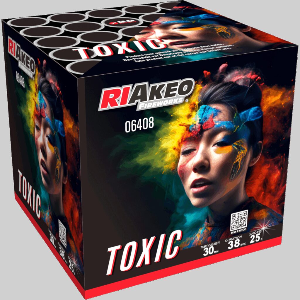 Riakeo Fireworks Toxic 25 shots Goedkoop vuurwerk kopen bij Vuurwerkwinkel Harderwijk